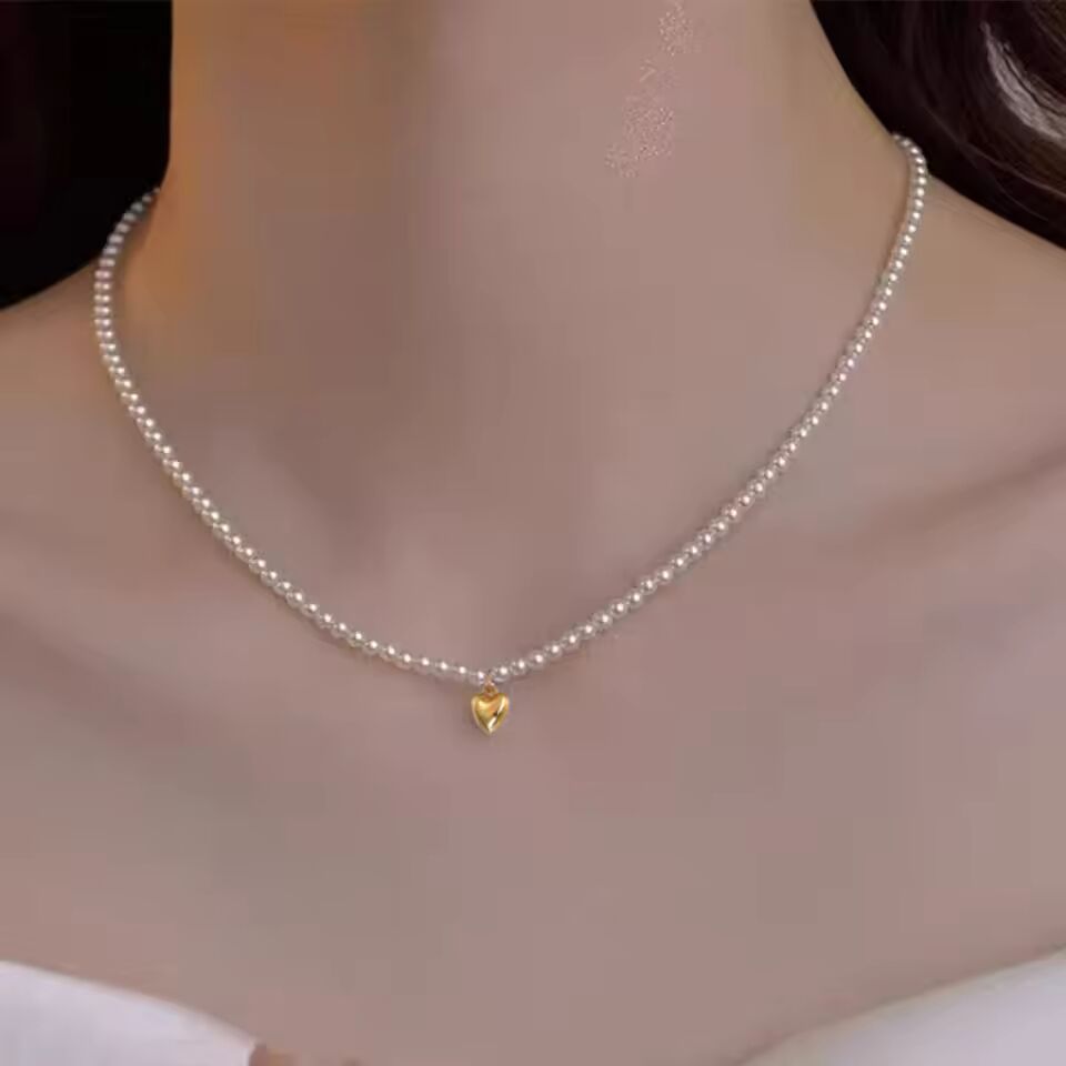 Seulement 925 Sterling Silver Heart Pendant Pearl Bead Necklace Classics Luxury Jewelry Accessories for Women Girls